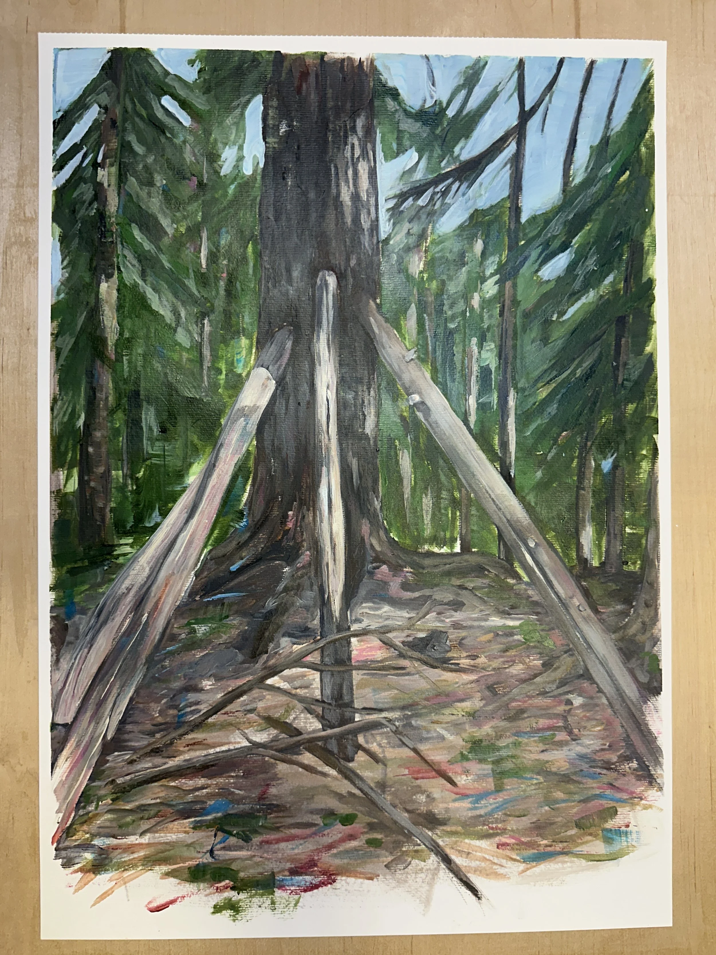 Watercolor, watercolorpencil and liquid coal on paper, 59 x 42 cm